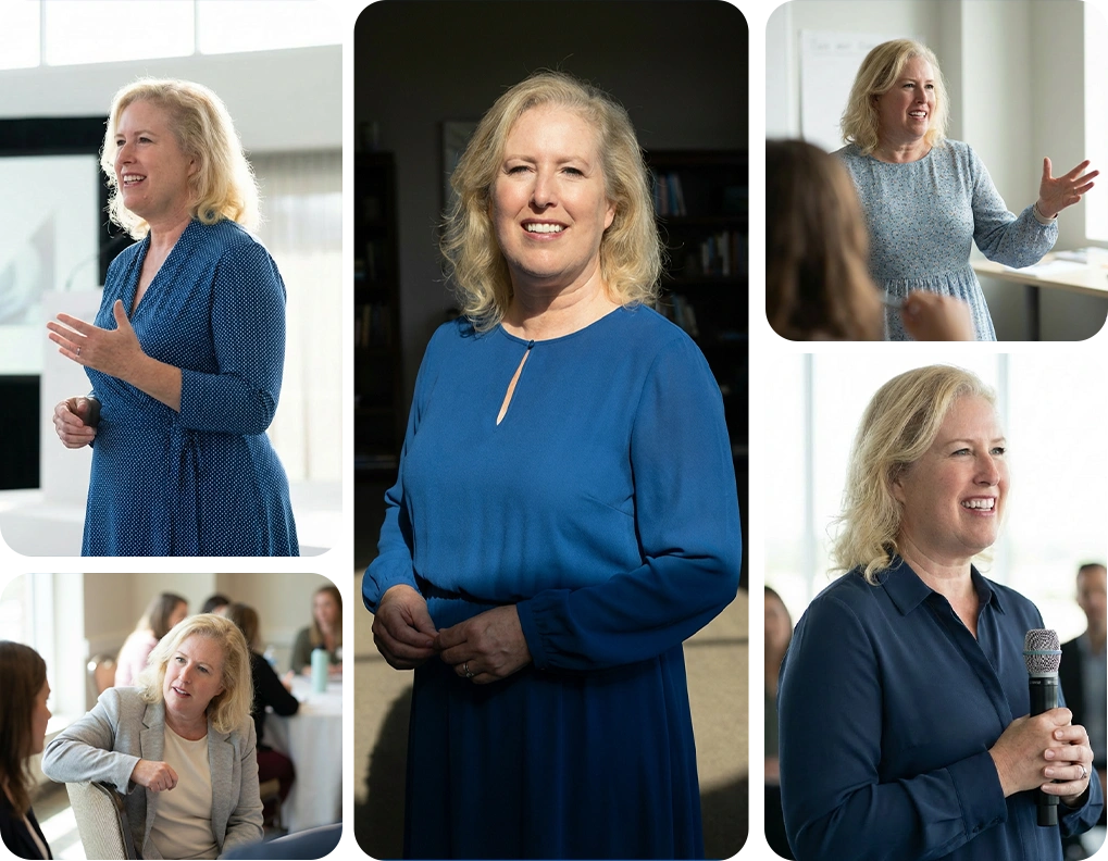 Visuals showcasing Tonya in professional speaking and workshop settings, giving a sense of her style and presence.